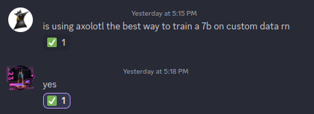 I also just completely removed the @ sign from every message, my first model iteration really liked sending pings and nothing else (I did not do any dataset filtering). Now it just looks like people are mentioning names instead of pinging.